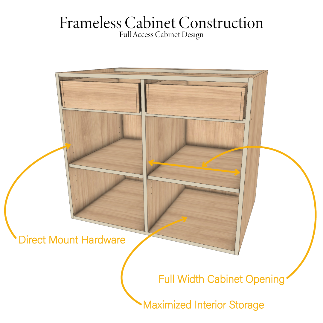 Frameless cabinetry is often recommended for its durability, increased usable storage, and improved functionality. By eliminating the face frame, cabinet openings remain fully accessible, allowing for wider drawers, easier access, and cleaner alignment.