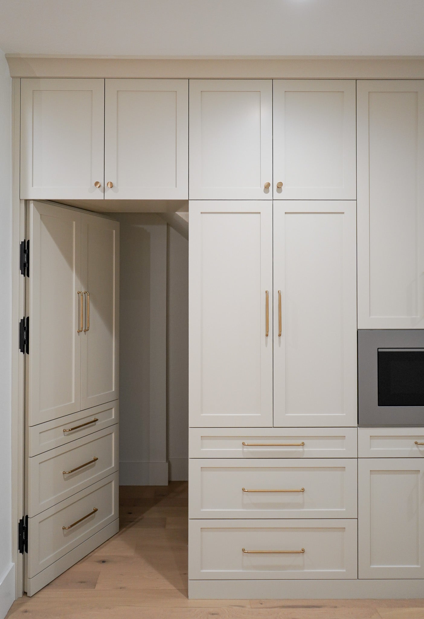 Hardware plays an important role in how cabinetry feels and functions. Soft close hinges and drawer systems allow doors and drawers to operate smoothly and quietly, reducing wear over time and improving everyday use.